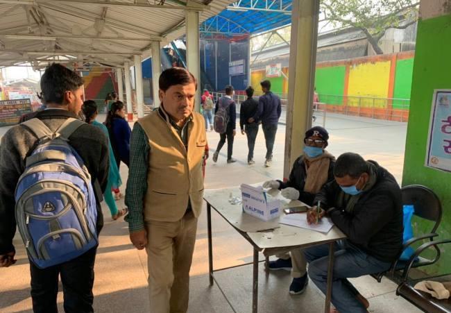 रेलवे स्टेशन पर हनुमान मंदिर के सामने से बाहर निकलने वाले गेट पर स्वास्थ्यकर्मी को लगाया गया हैं। वे वहीं पर कुर्सी लगा बैठते हैं। यात्री बिना जांच कराए निकलते रहे। कहने पर भी अधिकतर नजरअंदाज करते हुए चलते रहे। कर्मी से पूछने पर बताया कि किट है। लेकिन पुलिस बल का सहयोग नहीं मिलने के कारण परेशानी हो रही है। लोग बहस करने लगते हैं। इस कारण सभी लोगों की जांच नहीं हो पाती है।