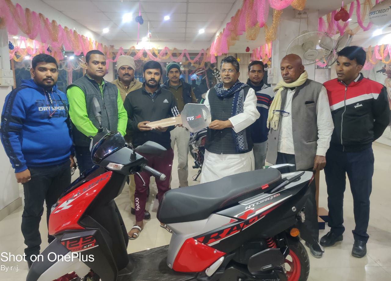 वही मौके पर ग्राहक ने 125cc स्कूटी न्टोर्क खरीदा। उजियारपुर विधायक ने सुभकामना देते हुए ग्राहक को चाभी शौपी.