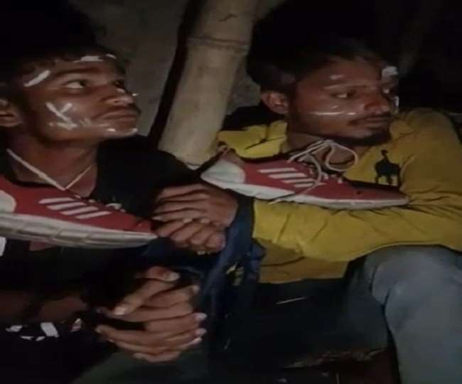 पश्चिम चंपारण। शिकारपुर थाना क्षेत्र के एक गांव में शनिवार की आधी रात को प्रेमिका को मोबाइल देने पहुंचे दो मनचले युवकों को ग्रामीणों ने पकड़ कर बांस के खंभे में बांध दिया। पहले दोनों का सिर मुड़वाया और मुंह पर चूना पोतकर जूते का हार पहनाया। दोनों की बेरहमी से पिटाई कर कहलवाया गया कि बोलो अपनी बहन से मिलने आए थे। भयभीत आशिक और उसका साथी प्रेमिका को बहन बोलने लगे। इसके बाद दोनों को छोड़ दिया। इसका एक वीडियो इंटरनेट मीडिया पर वायरल होने के बाद पुलिस हरकत में आई है। वायरल वीडियो की जांच हो रही है। हालांकि दैनिक जागरण वायरल वीडियो की पुष्टि नहीं करता है। घटना शिकारपुर थाने के पूर्वी क्षेत्र में अवस्थित गादियानी गांव की बताई जा रही है। जानकारी के अनुसार दो युवक शुक्रवार की देर रात अपनी प्रेमिका को मोबाइल देने उसके घर पहुंचे थे। वहां ग्रामीणों ने उसे रंगे हाथ पकड़ लिया। बाद में ग्रामीणों ने कथित प्रेमी और उसके दोस्त की जमकर पिटाई भी कर दी। थानाध्यक्ष अजय कुमार ने बताया कि मामले की जांच कराई जा रही है। आरंभिक सूचना के अनुसार गदियानी टोला का मामला सही पाया गया तो कड़ी कार्रवाई की जाएगी। वहीं एसडीपीओ कुंदन कुमार ने बताया कि वीडियो की सत्यता की भी जांच कराई जा रही है। शिकारपुर पुलिस मामले की जांच कर रही है।