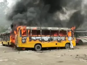औरंगाबाद में प्रदर्शकारियों ने खड़ी बस में आग लगा दी।