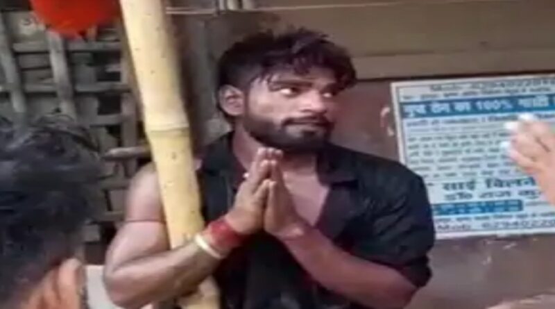मंदिर में हंगामा करने के आरोप में युवक की पिटाई,रस्सी से बांध कर लात घुसे से..