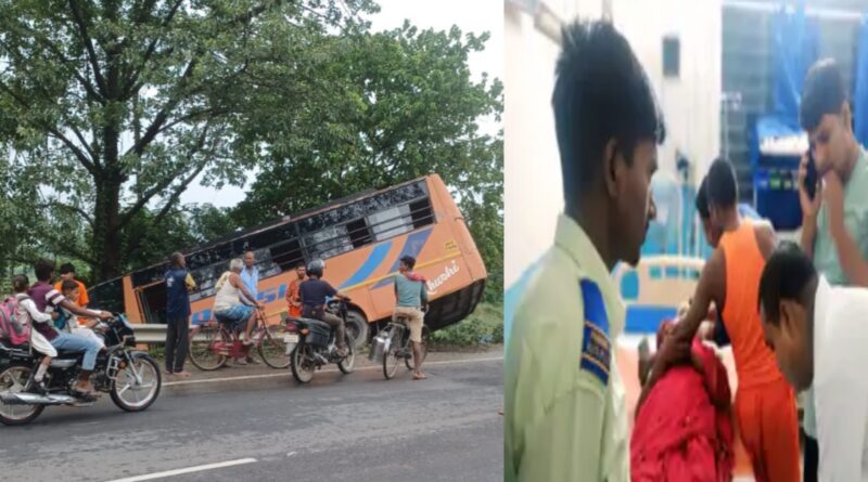 देवघर जा रही बस,NH 28 चिरंजीवीपुर में डिवाइडर से टकराई,12 कांवरिया घायल