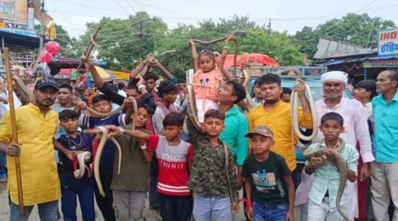 समस्तीपुर के सिंघिया और नरहन में सांपों के साथ भगत और सहयोगी झूमे,करतब