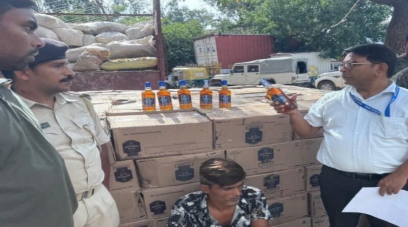 22 लाख की शराब जब्त,ट्रक में कुरकुरे व साेयाबीन के कार्टन के नीचे छिपा था