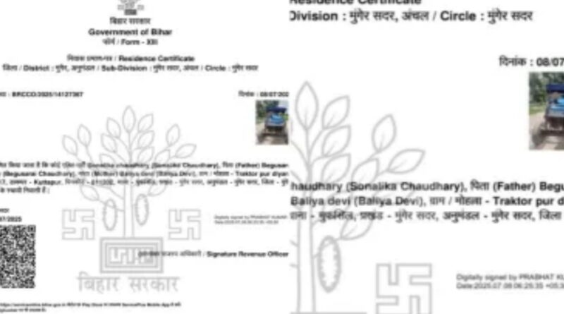 पटना.अक्सर आपने सुना होगा कि शिक्षा विभाग द्वारा गलती से किसी हीरो या हीरोइन का एडमिट कार्ड जारी कर दिया गया। इसके अलावा किसी जानवर का वोटर कार्ड या आधार कार्ड बनवा दिया गया। लेकिन मुंगेर में इस बार एक ऐसा मामला सामने आया है, जिसने सबको हैरान कर दिया है। दरअसल यहां सदर प्रखंड कार्यालय द्वारा एक ट्रैक्टर का आवासीय प्रमाण पत्र (निवास प्रमाण पत्र) जारी कर दिया गया है। आवासीय प्रमाण पत्र और उसमें दिख रही ट्रैक्टर की तस्वीर सोशल मीडिया पर खूब वायरल हो रही है। इस मामले पर सदर एसओ ने संज्ञान लेते हुए इस प्रमाण पत्र को रद्द कर दिया है और आगे इस मामले में जांच के आदेश दे दिए हैं।
