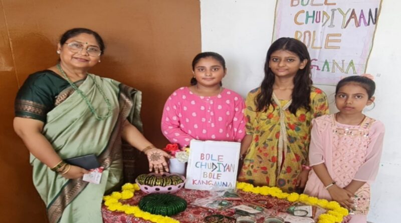 समस्तीपुर:सीपीएस में मनाया गया सावन महोत्सव,मेहंदी डिजाइन अपने हाथों पर बनाकर दिखाया