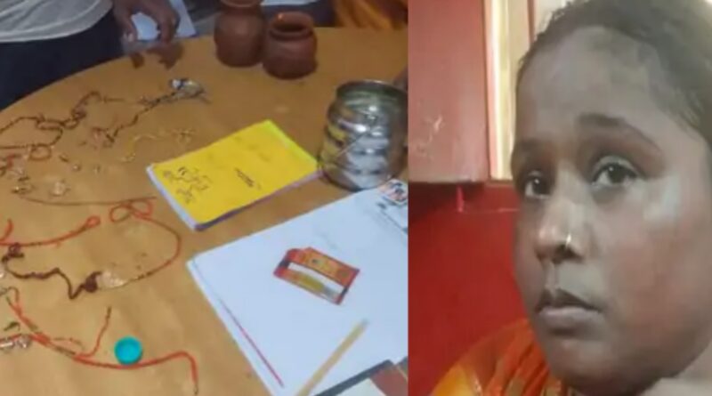 विद्यापतिधाम मंदिर में ज्वेलरी झपटकर भाग रही महिला को पकड़ा:गोल्ड और सिल्वर के 25 आभूषण बरामद