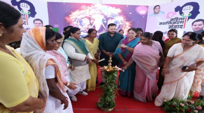 तेजस्वी यादव ने महिला संवाद कार्यक्रम को संबोधित करते हुए कहा कि बिहार में महिलाओं का मान-सम्मान बढ़ाने और उन्हें निर्णय लेने की प्रक्रिया में भी शामिल किया जाएगा। आप लोगों की वजह से घर चलता है, लेकिन आपकी तकलीफें कोई नहीं सुनता है। देश का सबसे गरीब राज्य बिहार है, यहां रोजगार नहीं है.महंगाई इतनी बढ़ गई है कि महिलाएं अपनी पसंद की चीजें खरीद या खा नहीं सकती हैं। दिल पर हाथ रखकर बताइए, महंगाई बढ़ी है या नहीं।