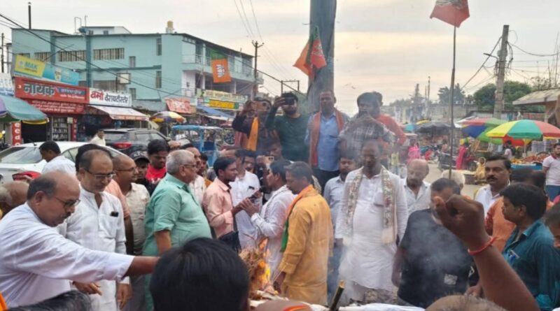 दलंसिहसराय।बीते दिनों दरभंगा में महागठबंधन की यात्रा के दौरान विपक्ष के नेता राहुल गांधी और तेजस्वी यादव के मंच से प्रधानमंत्री नरेन्द्र मोदी के स्वर्गीय माता को लेकर गाली-गलौज गाली- अभद्र टिप्पनी से नाराज नगर मंडल दलसिंहसराय सह उजियारपुर विधानसभा क्षेत्र के भाजपा कार्यकताओं के द्वारा महावीर चौक पर विरोध प्रदर्शन एवं पुतला दहन कार्यक्रम आयोजित किया गया.कार्यक्रम की अध्यक्षता नग मंडल अध्यक्ष गीता साह ने किया.