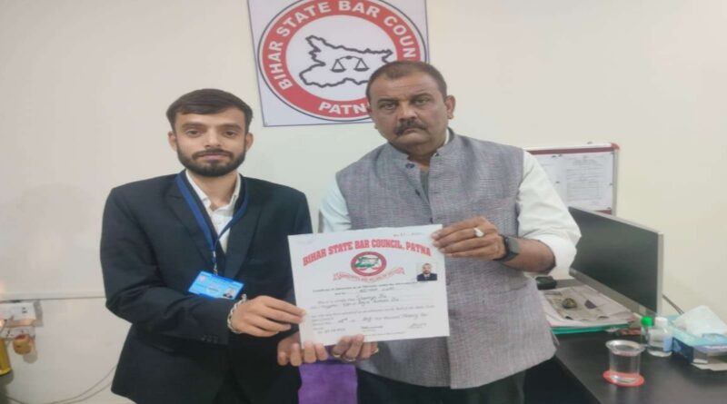 Samastipur News:उजियारपुर : प्रखंड के भगवानपुर देसुआ पंचायत के विशनपुर समथू गांव निवासी शौर्य झा को बिहार स्टेट बार काउंसिल पटना द्वारा अधिवक्ता का प्रमाण पत्र प्रदान कर सम्मानित किया गया. पटना हाईकोर्ट स्थित बार काउंसिल भवन में आयोजित एक सादे समारोह में काउंसिल के सचिव प्रफुल्ल चंद्र द्विवेदी ने प्रमाण पत्र सौंपा.