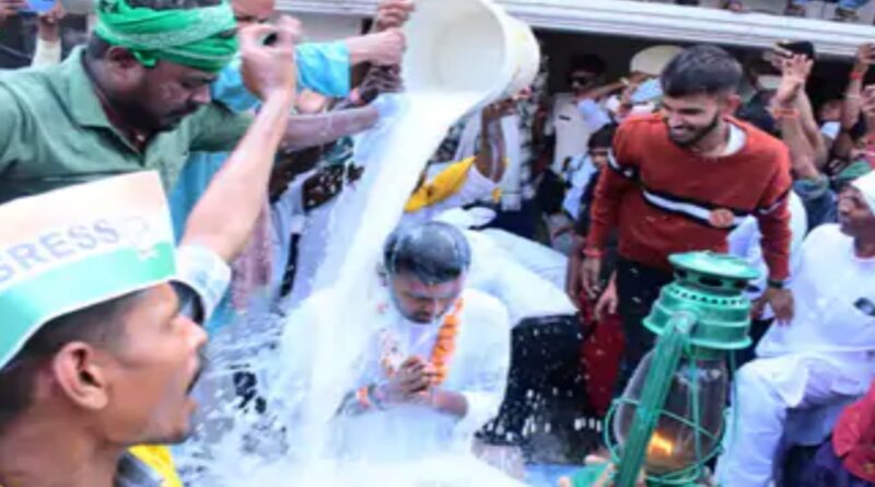 बेगूसराय में कांग्रेस प्रत्याशी का दूध से अभिषेक :बछवाड़ा से प्रत्याशी के गरीबदास