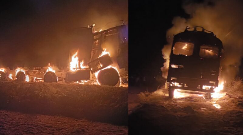 समस्तीपुर:बिजली के तार की चपेट में आने से ट्रक में लगी आग,ड्राइवर की मौत खलासी घायल