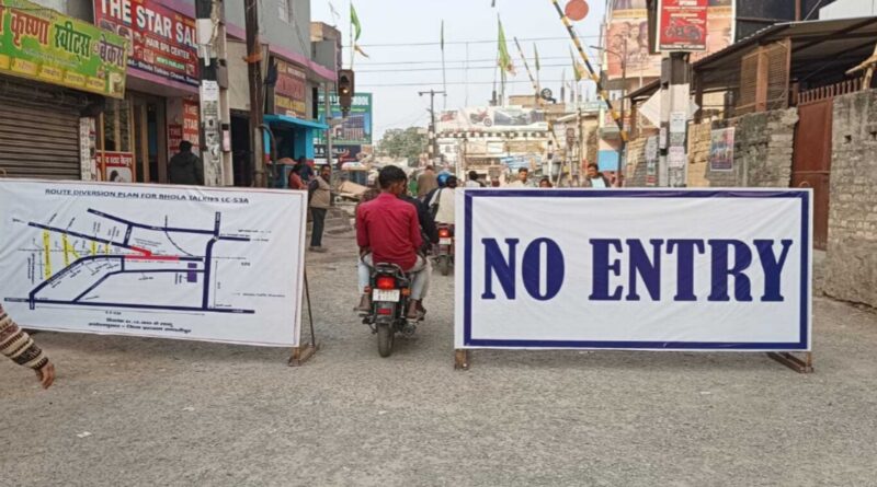 समस्तीपुर-मुजफ्फरपुर रेलखंड पर भोला टॉकिज रेलवे गुमटी संख्या 53 ए पर आरओबी निर्माण कार्य को शुक्रवार को नो इंट्री का बोर्ड लगा दिया गया गया है. सिर्फ दोपहिया वाहन आ जा रहे हैं. अन्य वाहनों की आवाजाही बंद है.भोला टॉकीज गुमटी के पास रूट डायवर्ट किया है. ताजपुर रोड में इस स्थल के पास करीब 988 मीटर का ब्लॉक लिया गया है. इसके लिए वाहनों को नया रूट होते हुए डायवर्ट किया गया है. पूसा की ओर से आने वाले व जाने वाले बड़े वाहन बस, ट्रक आदि इमली चौक से सुभाष चौक वैकल्पिक मार्ग के रूप में उपयोग कर सकते हैं. पूसा की ओर से आने वाले छोटे वाहन 2 पहिया व 4 पहिया गुरगुरी चौक से शंभूपट्टी चौक व पूसा की तरफ जाने वाले छोटे वाहन 2 पहिया, 4 पहिया जेल चौक से गुरगुरी चौक वैकल्पिक मार्ग के रूप में उपयोग कर रहे हैं.