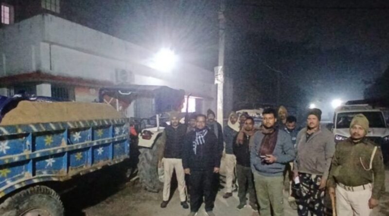 आधी रात अवैध बालू मंडी पर धावा,बालू लदे नौ ट्रैक्टरों के साथ युवक गिरफ्तार