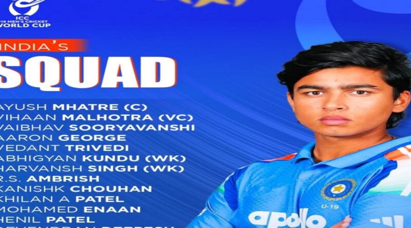 बीसीसीआई ने आईसीसी मेंस अंदर-19 क्रिकेट वर्ल्ड कप 2026 के लिए भी टीम की घोषणा की है। टीम इंडिया 15 जनवरी को USA के खिलाफ अपने वर्ल्ड कप अभियान का आगाज करेगी। दूसरा मैच 17 जनवरी को बांग्लादेश और तीसरा मैच 24 जनवरी को न्यूजीलैंड के खिलाफ खेला जाएगा।