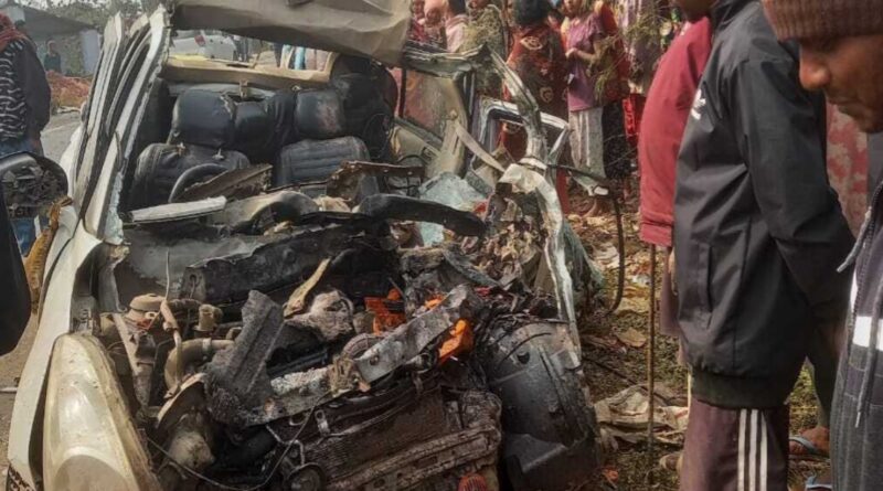 ट्रक मरम्मत कराने जा रहे थे,दुर्घटना में कार के परखच्चे उड़ गये