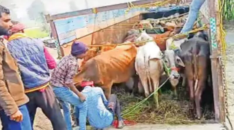 ट्रकों में छिपा कर ले जा रहे 90 गायों को पुलिस ने कब्जे में लेकर गोशाला भेजा