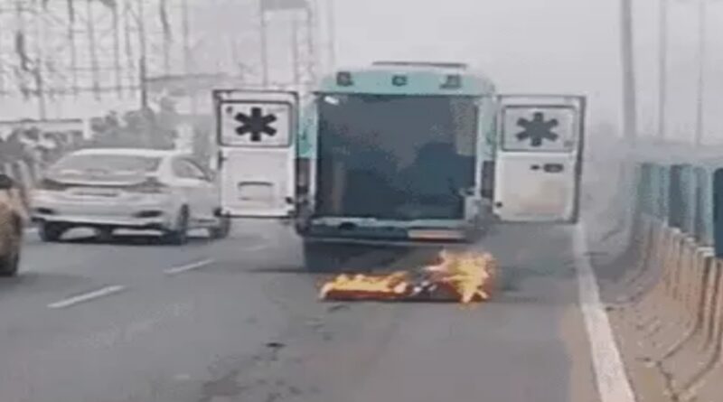 पटना के अटल पथ पर हादसा,चलती एंबुलेंस में लगी आग,मरीज को खींचकर बाहर निकाला