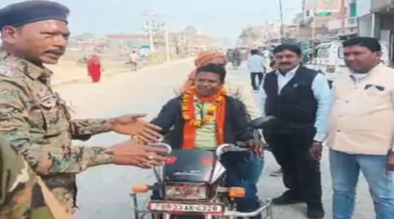 मोहिउद्दीननगर में पुलिस ने बिना हेलमेट वालों को पहनाई माला:किया जागरूक