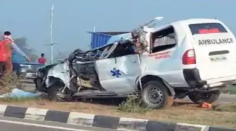 फोरलेन पर खड़ी गाड़ी में घुसी एंबुलेंस,महिला और कंपाउंडर की मौत