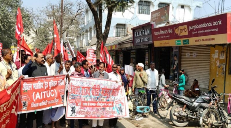 दलसिंहसराय,अखिल भारतीय ट्रेंड यूनियन किसान सभा के आह्वान पर देशव्यापी हड़ताल को लेकर दलसिंहसराय में हड़ताल समर्थको द्वारा शहर के प्रमुख बैंकों, पोस्ट ऑफिस, बीमा कार्यालय, निबंधन कार्यालय होते हुए शहर के प्रमुख मार्गों पर मजदूर किसान विरोधी केंद्र सरकार के खिलाफ नारेवाजी करते हुए जुलूस निकाला.जुलूस का नेतृत्व एटक के विनोद कुमार समीर,महिला नेत्री निलम देवी ने किया।