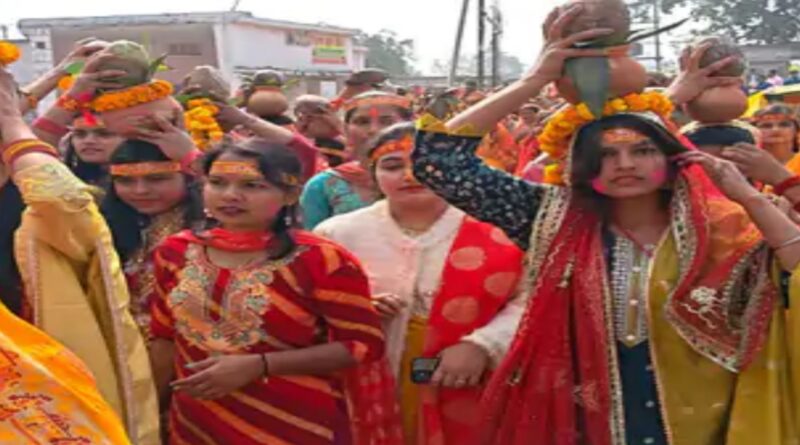 विद्यापतिनगर नर्मदेश्वर मंदिर प्राण-प्रतिष्ठा, चतरा गांव में शोभायात्रा का आयोजन