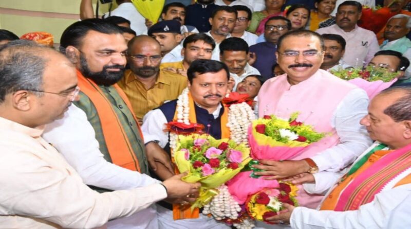 BJP ऑफिस में फूटे पटाखे-मखाने की माला से स्वागत:नितिन नवीन जीत पर बोले- एकता का परिणाम