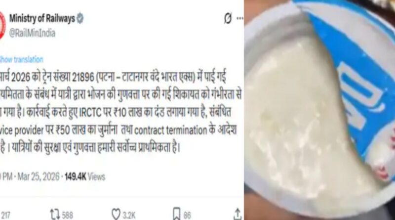 Read Moreपटना.भारतीय रेलवे ने अपनी ही कैटरिंग इकाई इंडियन रेलवे कैटरिंग एंड टूरिज्म कॉर्पोरेशन (IRCTC) और संबंधित फूड सर्विस प्रोवाइडर पर